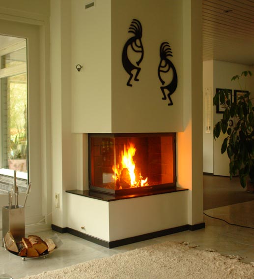 Cheminée d’angle Totem qui permet de profiter de la flamme en plusieurs dimensions et de tout les côtés de la pièce.