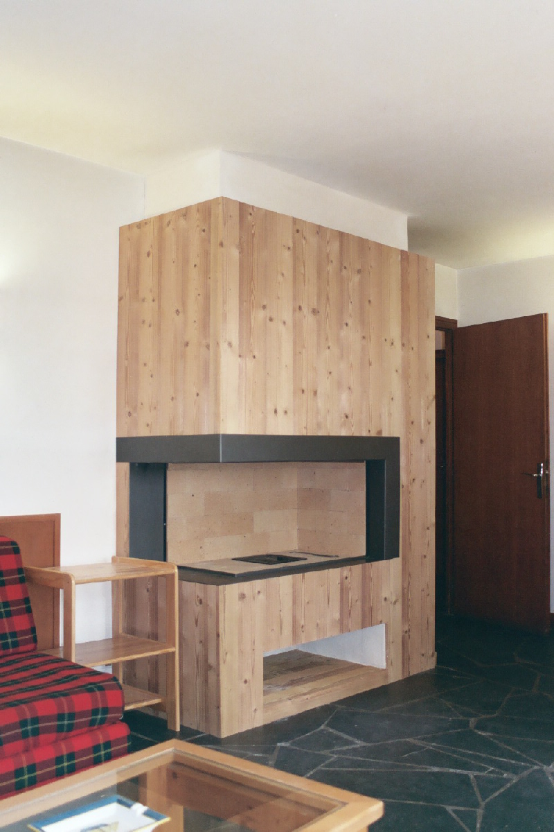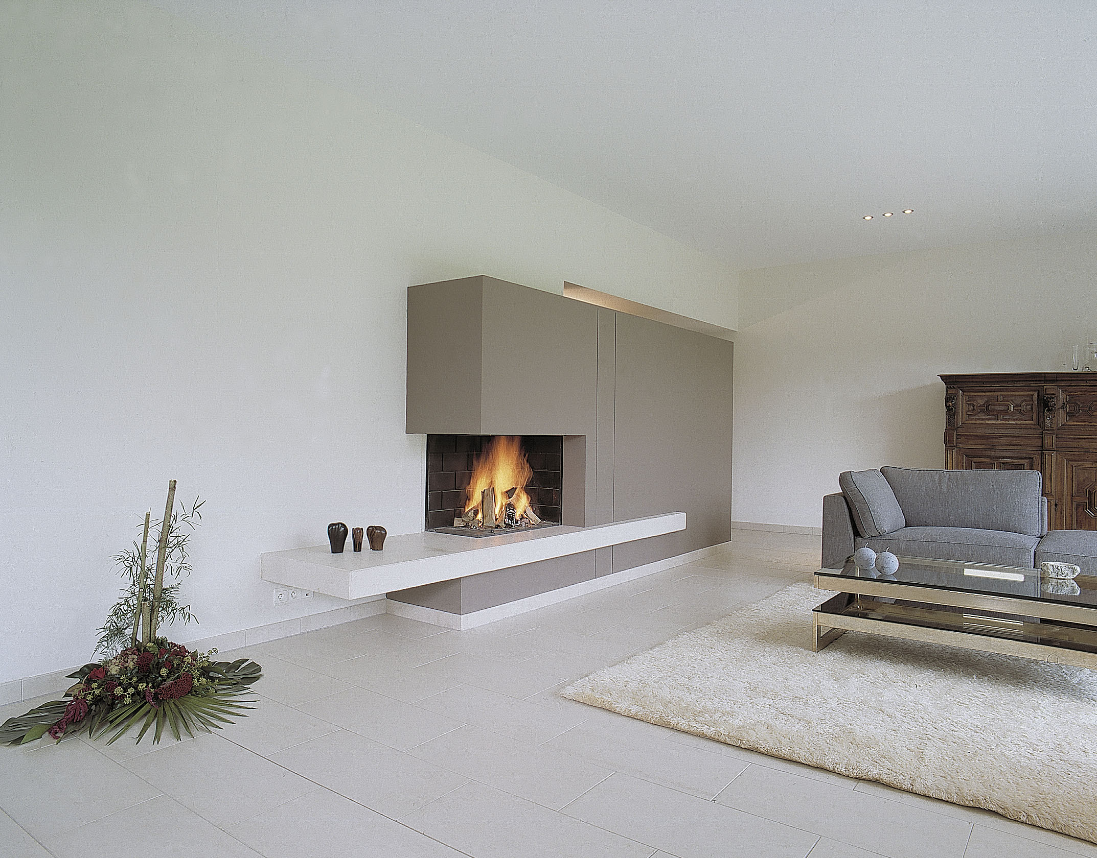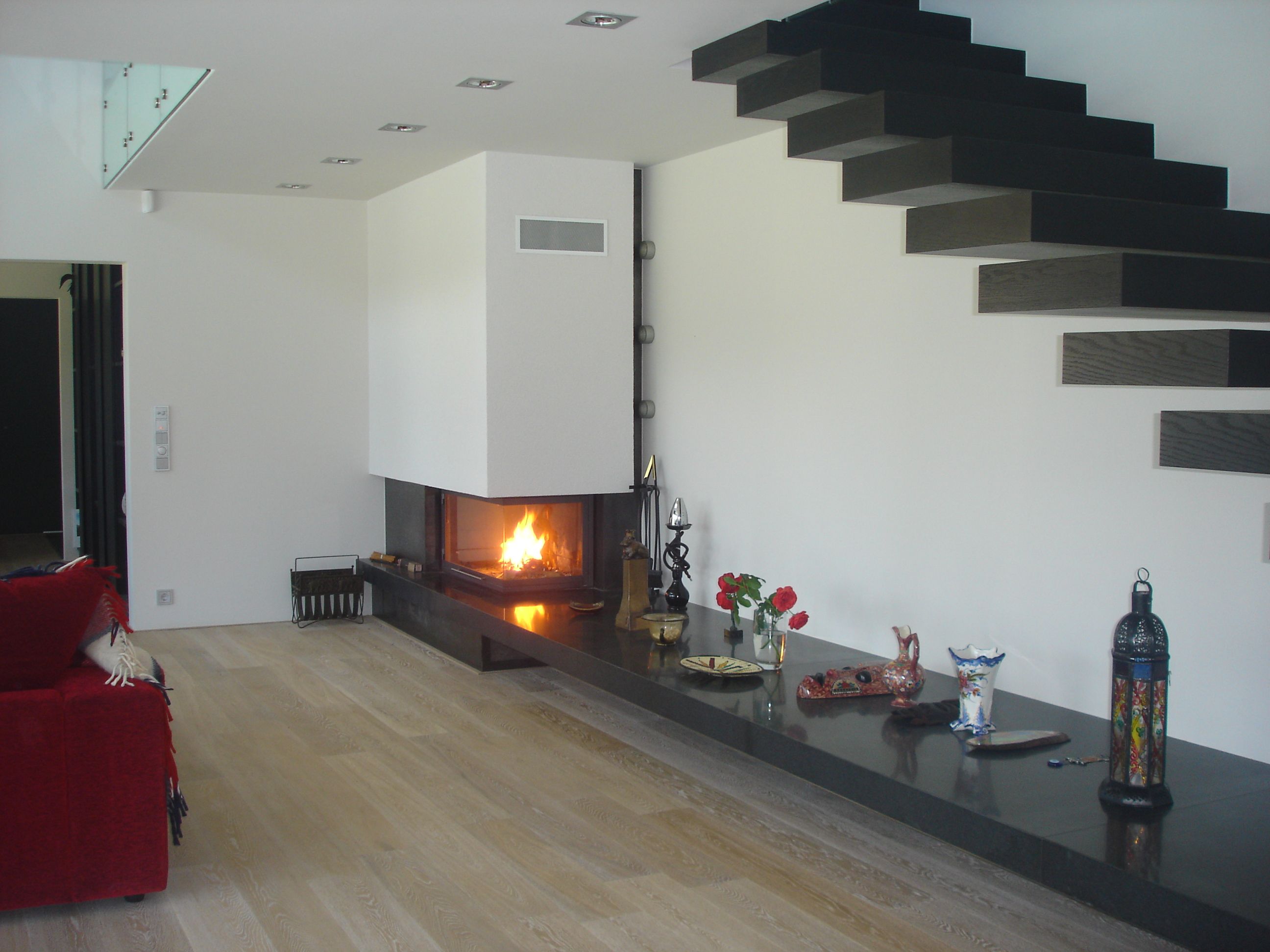 La taille du salon a permis de construire une cheminée design et épurée adapté à la superficie de la pièce.