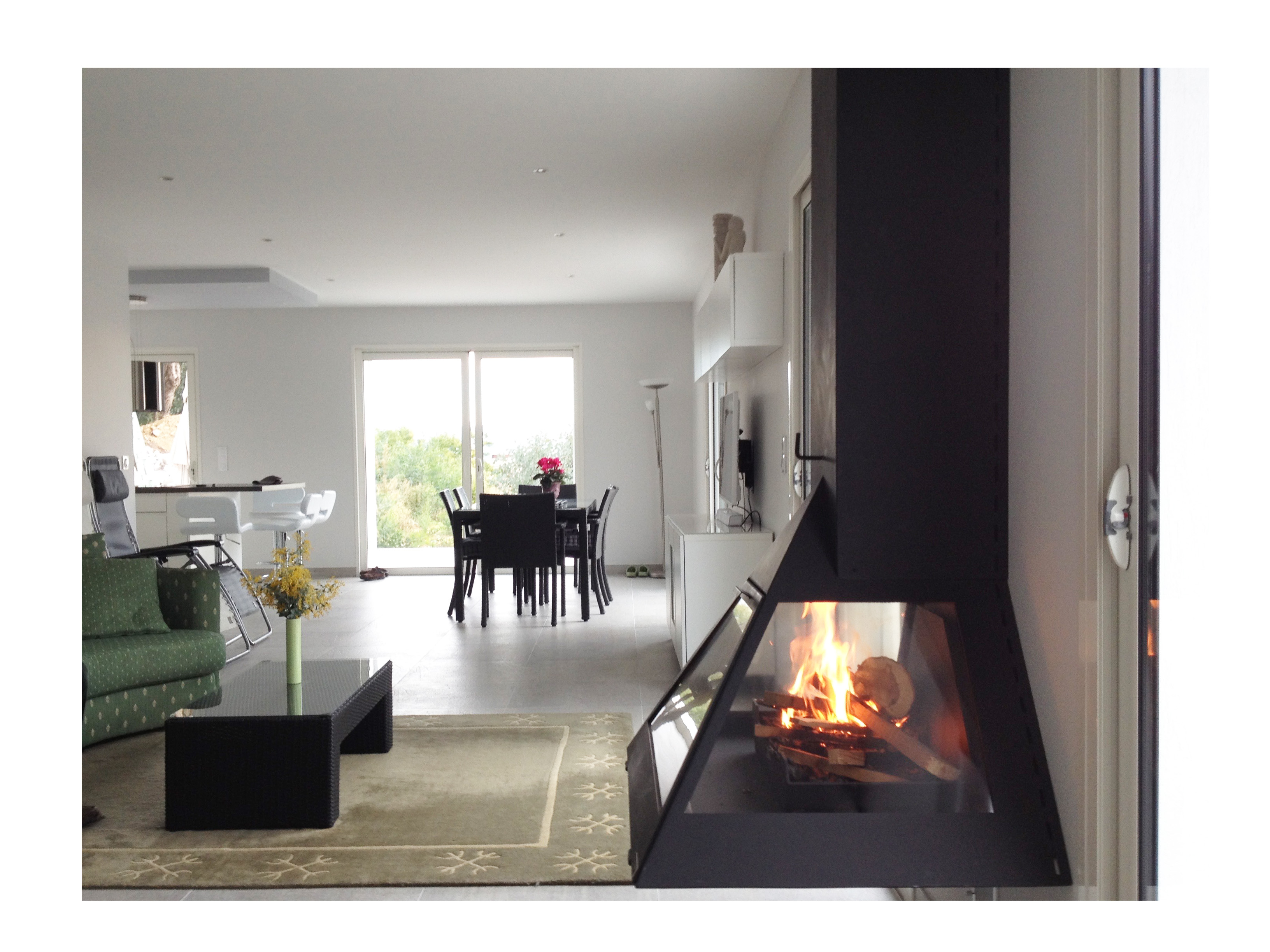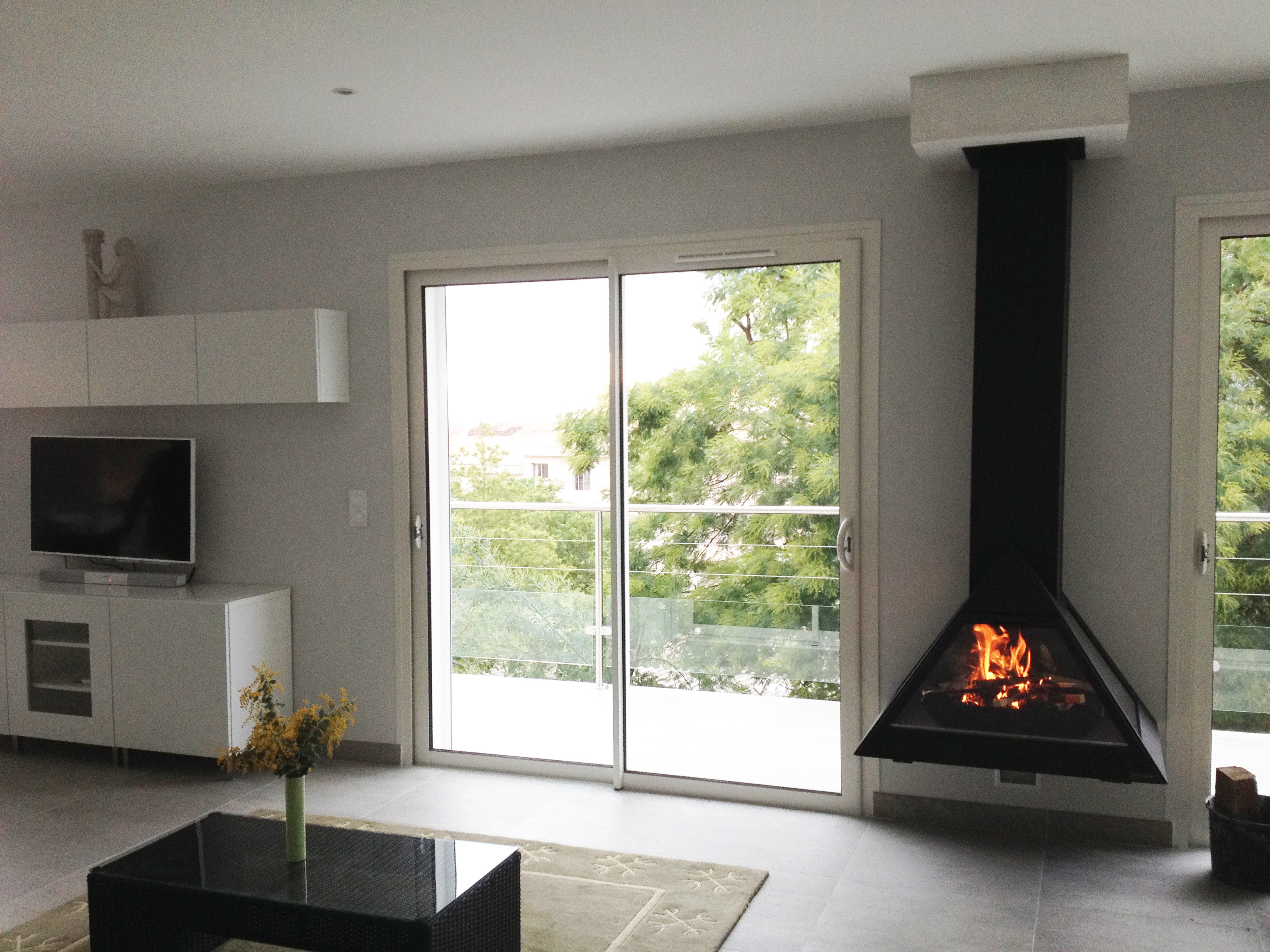 Installation d’une cheminée suspendue triangulaire à Aspremont (06790)